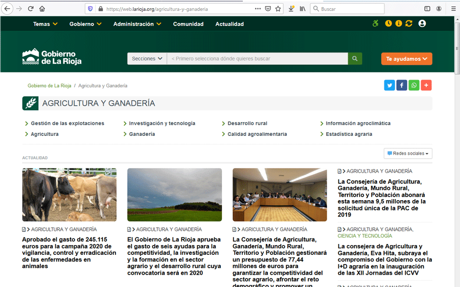 Esta mañana ha tenido lugar una reunión entre el Delegado del Gobierno y las Organizaciones Profesionales Agrarias para abordar el problema de los robos en el campo, especialmente de almendras. Por parte de la UAGR han participado los miembros de la Comisión Permanente Luis Torres y Pedro Martínez Escalona. 5 de noviembre Encuentro estatal de mujeres y solicitudes de ayudas para reestructuración y reconversión de viñedo Estos son los dos asuntos que aborda nuestra página en el suplemento mensual AGRO del diario La Rioja. Pincha en la imagen para descargártela. 4 de noviembre Artículo de José Luis Pisón sobre la vendimia 2019 y el precio de la uva en El Correo