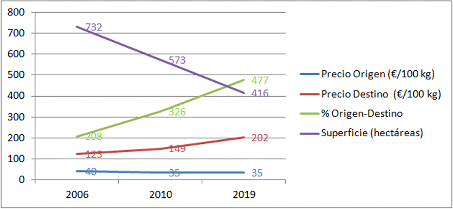 Evolución de la superficie y precios del melocotón en La Rioja (Elaboración UAGR-COAG con datos de la Consejería de Agricultura) Por su parte COAG (Coordinadora de la que forma parte la UAGR) ha realizado un balance de la primera mitad de la campaña estatal de fruta de hueso, con un resultado “desolador” para los productores. Así lo ve David Borda, responsable del sector de fruta dulce de COAG: “Supone una vuelta de tuerca más. Los productores de fruta “financiando” la nueva estrategia de las cadenas de distribución: fruta más barata desde el inicio de la campaña de verano (mayo) para que ese suelo marque la tónica en los meses restantes y les facilite ganar cuota de mercado en frescos respecto al comercio tradicional. De esta manera, se pierde el denominado “efecto de entrada” y la rentabilidad de las zonas de producción más tempranas que solía ser habitual, por no hablar del resto de zonas que entran en el mercado cuando se generaliza la campaña”. Si se analiza el diferencial de precio entre el árbol y la mesa, podemos observar cómo en lo que va de campaña 2019, el margen medio origen-destino nacional se ha situado en un 538% para melocotón y un 543% para nectarina, con niveles máximos en el mes de mayo de 633% y 643% respectivamente. Diferenciales claramente por encima de la media de las últimas 5 campañas. “Es decir, no están trasladando al consumidor en toda su magnitud la bajada de precios que sí están aplicando al agricultor”, ha puntualizado el responsable de fruta de COAG. Tras varios años en los que los precios a los agricultores/as en las distintas zonas de producción se han situado por debajo de los costes de producción, provocando la venta a pérdidas y llevando al abandono de explotaciones familiares, la situación actual es muy complicada y las perspectivas para afrontar futuras campaña son muy negativas por falta de liquidez y el alto nivel de endeudamiento. “Se está acelerando un cambio de modelo en nuestro sector frutícola. Los grandes inversores y capitales ajenos al agro, que han aterrizado en este sector como un elefante en una cacharrería, quieren quitarse de en medio cuanto antes a las pequeñas y medianas explotaciones familiares para que no entorpezcamos el desarrollo de su hoja de ruta y sus ansiados dividendos”, ha lamentado David Borda. 13 de agosto Novedad editorial: Despoblación y Desarrollo Rural en La Rioja, de Leire Díez Gutiérrez