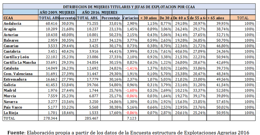 Lo más preocupante es el porcentaje global de mujeres titulares menores de 30 años, que no supera el 1% del total en cada Comunidad Autónoma, salvo en Andalucía (1,15%) y Cataluña (1,37%). Por el contrario, el porcentaje de mujeres titulares y jefas de explotación de más de 65 años supera en todas las Comunidades Autónomas el 35%, y en 6 Comunidades supera el 50%. “Esto significa que, en los próximos 5 años, deberían incorporarse en torno a 100.000 mujeres agricultoras para lograr el relevo generacional que garantizase la sustitución y el mantenimiento de las mujeres en el campo”, ha precisado Idañez.